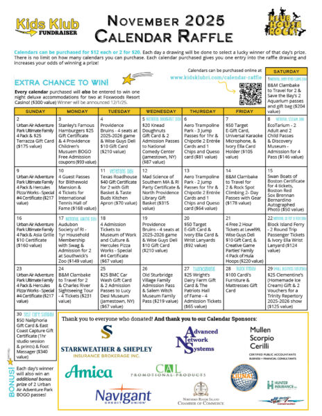 Calendar Raffle Fundraiser!